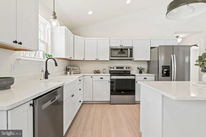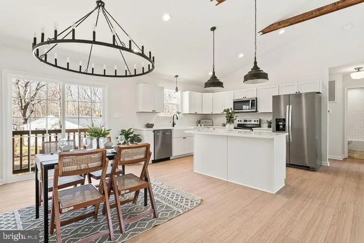 Step inside to a bright, open floor plan accented by exposed wood beams, custom lighting, and luxury vinyl plank flooring throughout the main level. The gourmet kitchen is both functional and stunning, featuring quartz countertops, stainless steel appliances, and a classic farmhouse sink. The main-level primary suite offers a private retreat with a spa-style bathroom that includes a free-standing tub and elegant designer tile.The fully finished basement provides even more living space with a large recreation room, an additional bedroom, and a full bath—ideal for guests, entertaining, or extended family.
