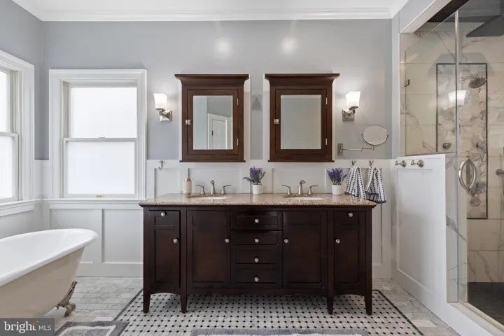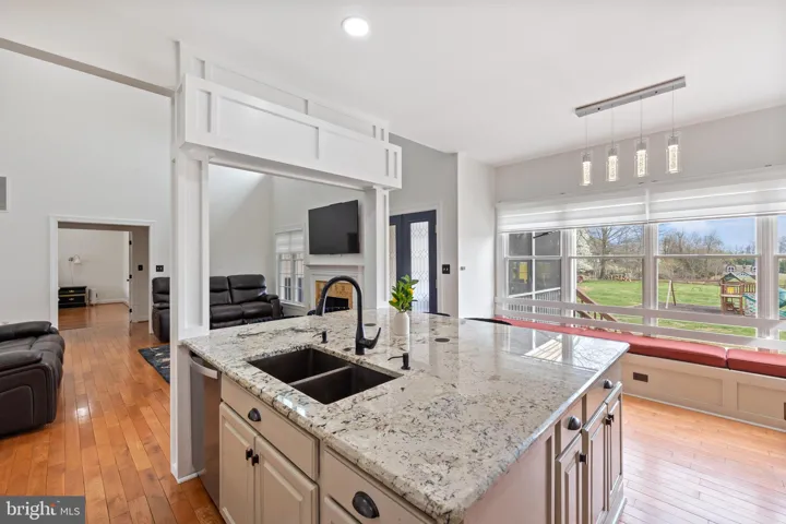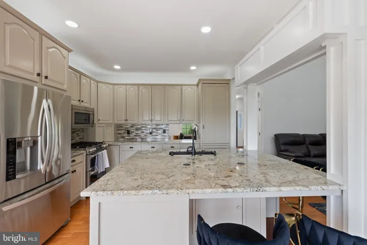 As you step inside, you’ll be greeted by a freshly painted interior that enhances the home’s natural brightness. The spacious, open floor plan features a gourmet chef’s kitchen with sleek countertops, a dual heat oven stove, an island with ample storage, and custom soft-close cabinetry.