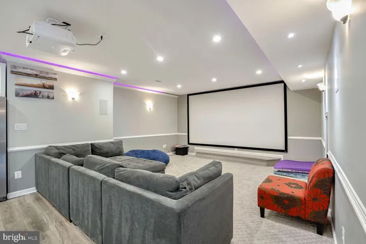 **Lower level is an entertainer’s paradise with luxury vinyl floors with two movie theaters with 7.2 channel and 5.1 channel premium sound systems and whole home automation and security system, a work out area, additional bedroom, rec room and a full-sized kitchen/wetbar with quartz counters with waterfall**.