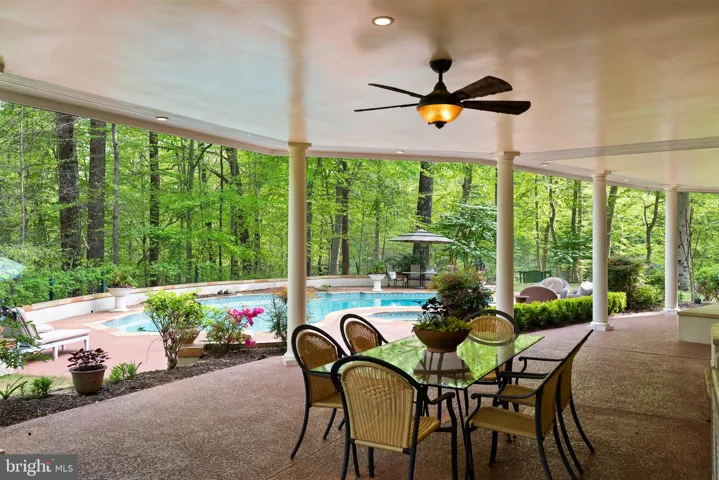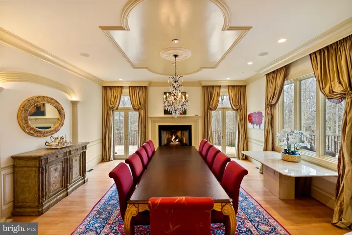 Encompassing nearly six acres, this expansive McLean property showcases Mediterranean-inspired architecture with a design that capitalizes on the enjoyment of an exceedingly rare private lot . The home is the last stop on Potomac School Road and is set back from the street for privacy. Its main level design allows unfettered flow between formal and casual living spaces across its western and eastern wings. With nearly 16,000 square feet, the residence was designed with an eye for proportion and scale, its rooms are inviting and offer an intimate environment. Highlights include a dramatic, double story entry foyer, grand living and dining rooms, and an eat-in kitchen inspired by France’s countryside cottages. The southern exposure provides an overlook of woodlands surrounding the Pimmit Run stream and can be appreciated from every room in the house. A separate, main-level living suite in the west wing is perfect for multigenerational living; other notable features include an indoor squash court and recreation room for a home gym, a separate wine cellar and tasting room, five fireplaces and a motor court with a three-car garage. A large terrace wraps the rear of the home, sitting above the spacious patio and heated, in-ground pool.