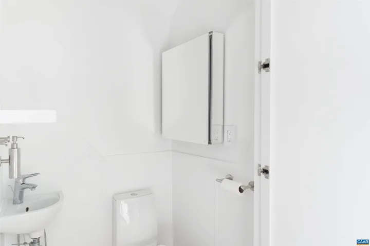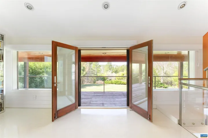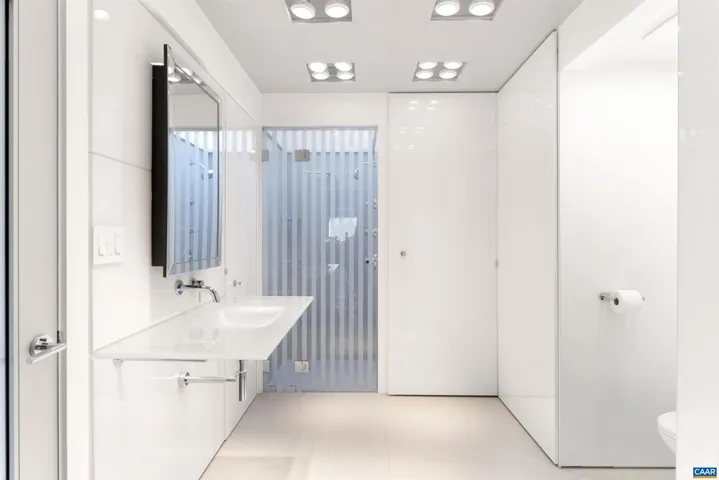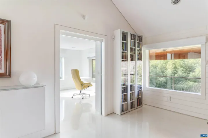 Privately set on 5.5 acres in northern Nelson Co., the rustic log and soapstone exterior belies a visually stunning sleek and sophisticated modern interior full of unusual and high-quality features, systems, and finishes. 3 bedrooms and over 4000sf of finished living. Oversized windows let natural light pour into the space. Highly durable Terrazo and soapstone flooring, built in custom cabinetry everywhere you turn, high-tech lighting and electrical, geothermal HVAC, standing seam steel roof, retractable blinds and porch screens, security and sprinkler system, whole house generator, level 2 EV charger, whole house lightning protection, advanced regenerative water filtration, soundproofed fridge, and much more. Front and rear porches allow for expansive views of local mountains and forests. Paved drive, gated entrance, cisterns for water storage, shed with electric, extreme privacy, and 200ft of creek frontage. The essence of a retreat, with no sacrifices for modern amenities or connectivity. High-speed Starlink internet. You could not come close to replicating this property for this price.,Solid Surface Counter