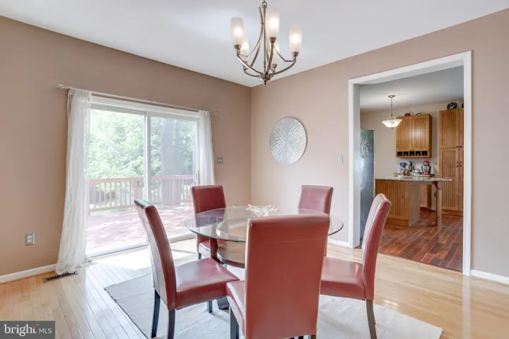 The main level floor plan flows from one room into another with a living room featuring a cozy fireplace, a large dining space, and access to the large deck overlooking a fully fenced backyard, offering a private oasis for gatherings, pets, or just unwinding after a long day.