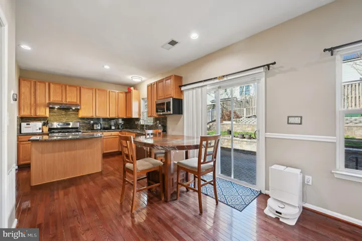 Very convenient location, well maintained single family house with many upgrades! 9′ ceilings, 42 in cabinets, recessed lighting, granite countertops, hardwood floor on the main level, crown moulding, projector and screen in basement included in sale, and built in speaker system with amplifier. Beautifully maintained yard, plum and cherry tree personally planted by seller and conveys with the sale. Additionally water softener for whole house in place, and multiple water filters with reverse osmosis. Living room wall mount for flatscreen included. Updated lighting, tesla charger with wiring and device in garage, very young roof, vinyl Fenced yard, terraced rear yard and brick patio. Close to I-95, RT-32 and Fort Meade