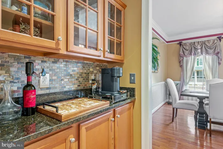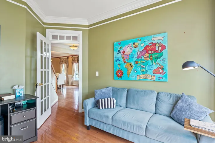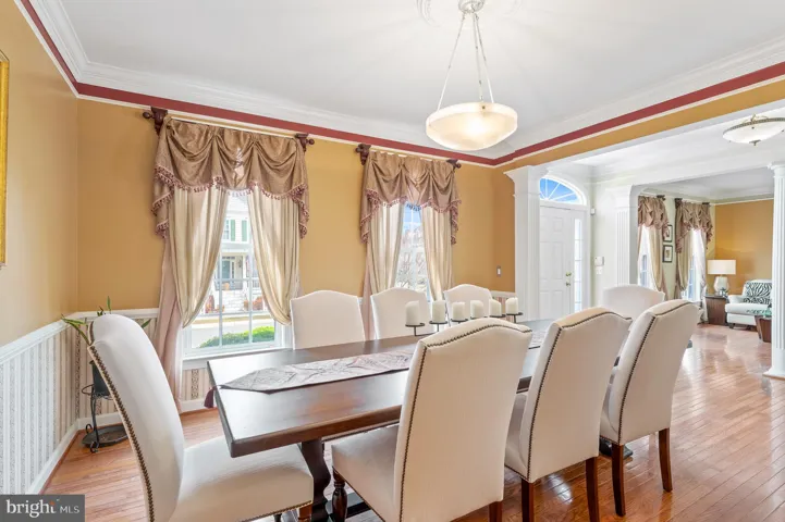 As you step inside, you’ll be greeted by an inviting open-concept layout, featuring a spacious living room filled with natural light and hardwood floors. The gourmet kitchen is a chef’s dream, boasting high-end stainless steel appliances, a large center island, sleek granite countertops, and custom cabinetry. A separate formal dining room offers the ideal space for hosting family dinners and holiday gatherings. A charming butler’s pantry and walk-in pantry are ideal for holding your entertaining necessities. A light filled main level home office is perfect for those work-from-home days