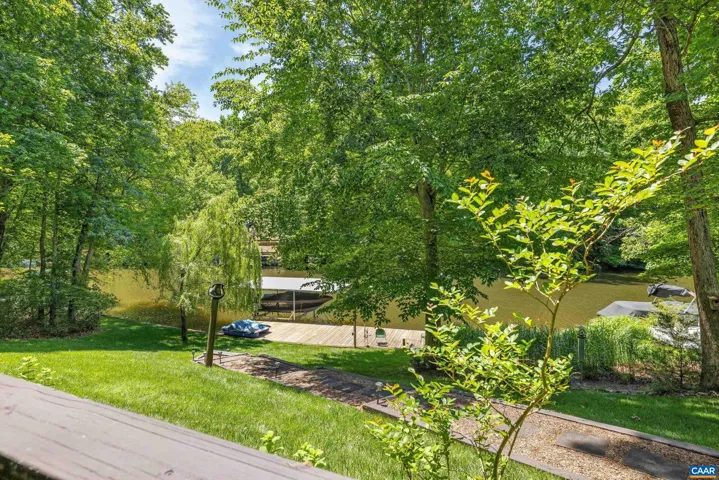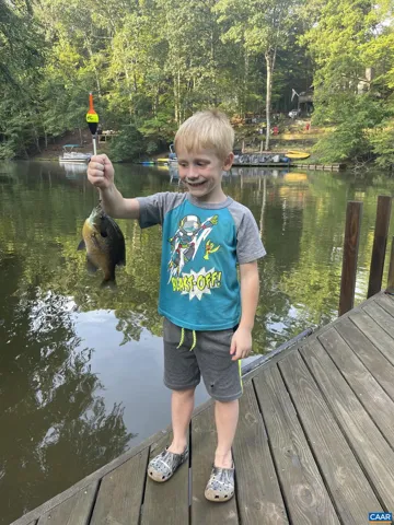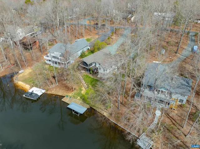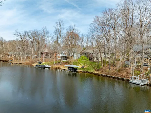 EXPERIENCE THE BEST OF LAKE LIVING! Beautifully maintained waterfront home offers 110? of lake frontage on a peaceful .61-acre lot in a no-wake cove?perfect for fishing, kayaking, swimming, or floating. A large dock w/ boat lift (new in 2022), fishing/ski boat & pedal boat are included. Built by award-winning Southern Homes, this gem features an open floor plan, vaulted ceilings, solid hardwoods & stunning lake views from the cozy living room w/ gas fireplace. Kitchen Aid double oven, Bosch dishwasher, Miele gas stovetop, Samsung French door fridge, Maytag washer. Main-level primary suite includes a spa-like bath w/ heated tile floors, walk-in shower & double vanity. Outdoor living includes screened porch, large deck & screened patio?all overlooking the lake. Terrace level includes bedroom, wet bar, office/craft room (optional 4th bed) & workshop w/ private yard access. Gas hookup ready for 2nd fireplace & outdoor shower. Whole-yard irrigation w/ new pump (2024). New roof, gutters & guards (2023). VA Green lawn service & A/C maint. paid through 2025. Close proximity to Beach 2 & easy access to the water?s edge via a lush, grassy backyard?your private lakeside retreat awaits! Must see!,Granite Counter,Oak Cabinets,Fireplace in Living Room