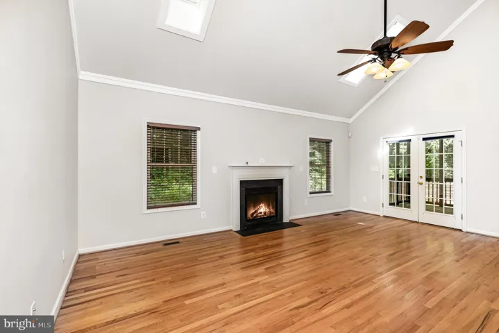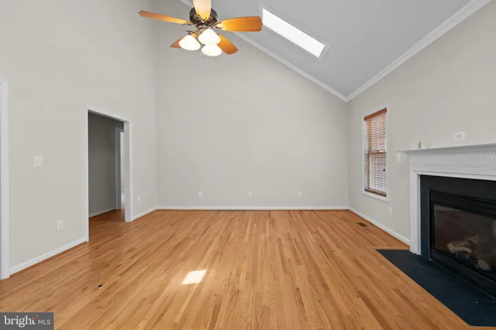 Great Room: Vaulted ceiling, skylights, gas fireplace, and hardwood floors make this the heart of the home.
