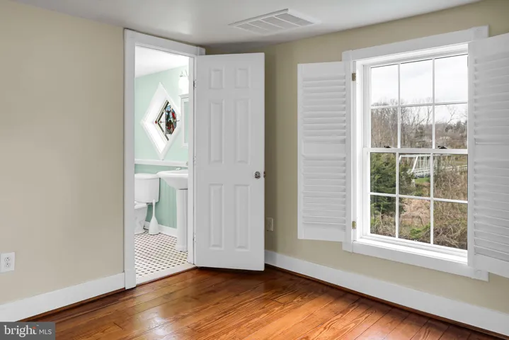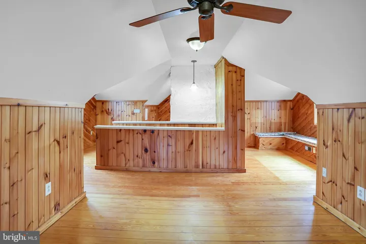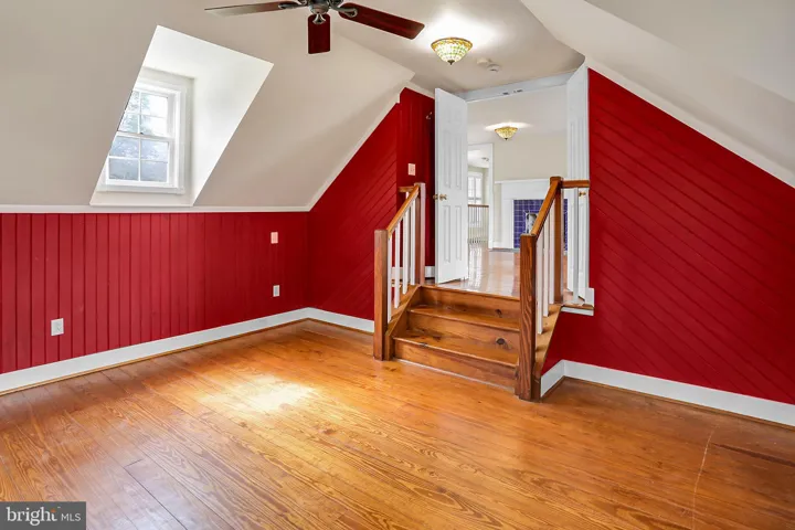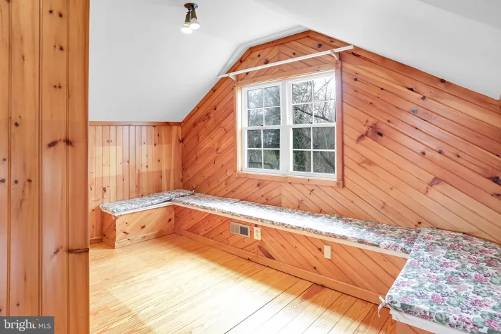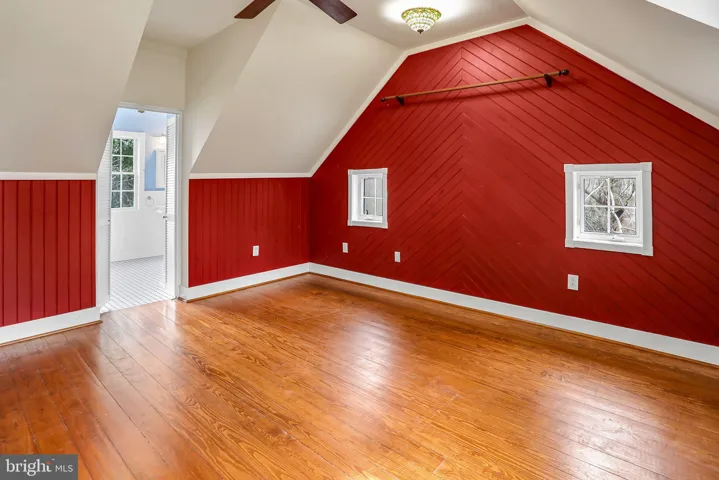 The third/top floor is nicely finished with knotty pine paneling and wood flooring. There is great cross ventilation up here with opposing windows and views of the Rappahannock River and the historic Waterloo Bridge. This is much more than reclaimed attic space. Let your imagination take charge.