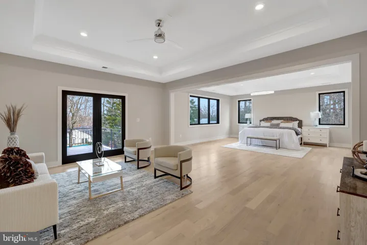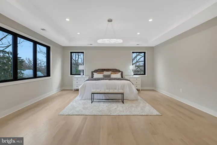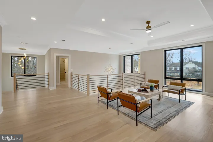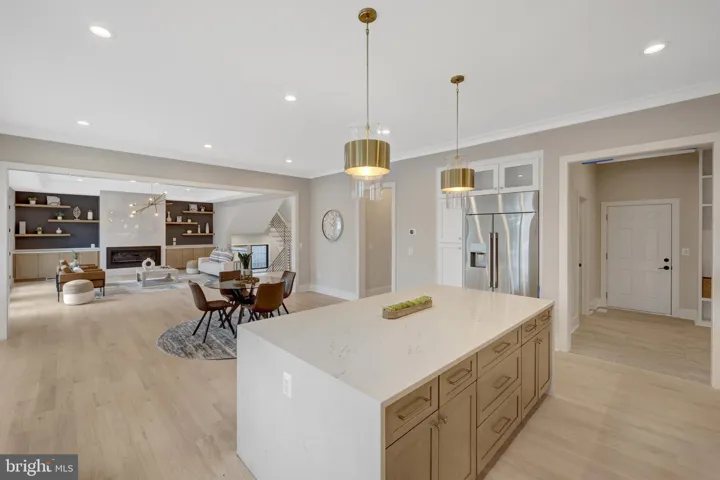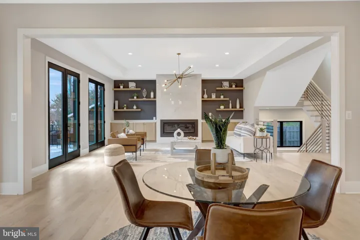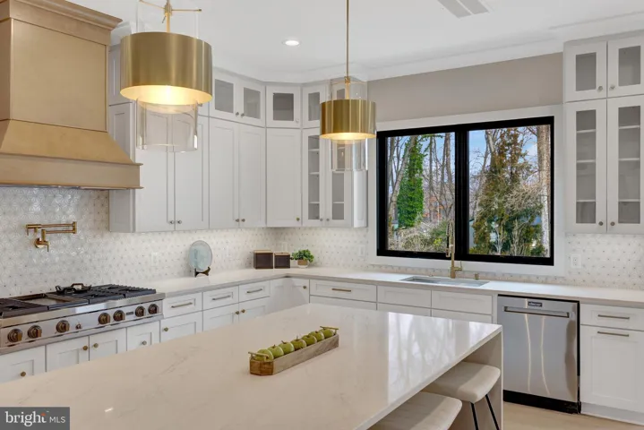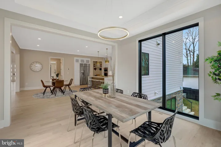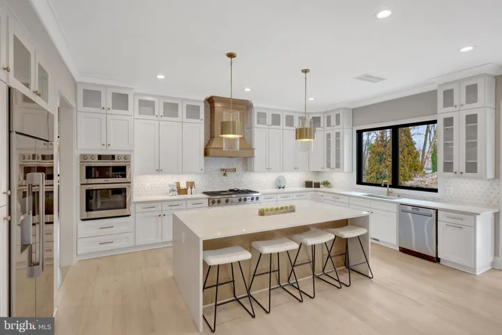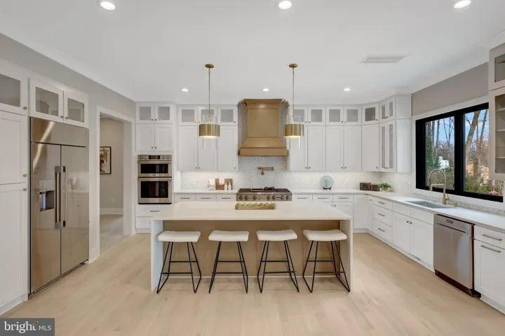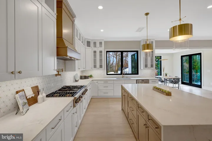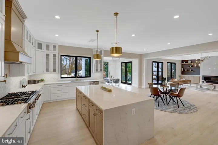 Solid oak hardwood floors gleam as they lead into vast, light-filled living areas, while soaring 10-foot ceilings on the main level and 9-foot ceilings throughout the upper floors create an atmosphere of grandeur. The gourmet chef’s kitchen is a true showpiece, featuring high-end stainless-steel appliances, a walk-in pantry, and a spacious breakfast nook—perfectly designed for culinary aficionados. The adjacent family room, complete with a custom linear fireplace, bespoke built-ins, and sweeping views of the lush landscape, offers an inviting retreat for both intimate gatherings and lively celebrations.