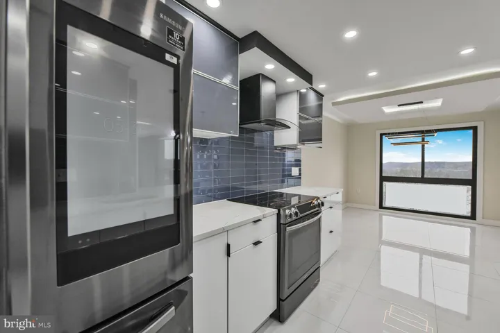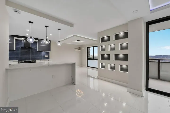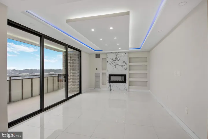 Step into this expansive 1,600+ square foot, two-bedroom, two full and one half-bath condo, where elegance meets modern convenience. From the moment you enter, you’re welcomed by gleaming white porcelain flooring, custom designed ceilings, and beautifully updated lighting. The main living space features an exquisite wall unit with an electric fireplace, creating a cozy yet sophisticated ambiance. Artistic wall niches above the convenient counter seating offer the perfect space to showcase your favorite décor. The open-concept kitchen is a chef’s delight, boasting custom Thomasville cabinetry, granite countertops, a stylish tile backsplash, a wine cooler, and state-of-the-art black stainless steel appliances all Bluetooth compatible. Adjacent to the kitchen, the utility room includes a full-size washer and dryer with ample storage space. The windowed dining area is illuminated by a stunning light fixture, while floor-to-ceiling sliding glass doors open to breathtaking views of Old Town Alexandria and the community’s exceptional outdoor amenities. A sleek and stylish powder room completes the first level. The primary suite offers a serene escape with a spacious walk-in closet, custom shoe closet and a stunning newly renovated bathroom. The generous guest bedroom is accompanied by another beautifully upgraded full bathroom. Step out onto the upper-level balcony to take in even more of the stunning cityscape.