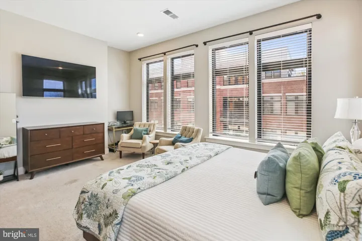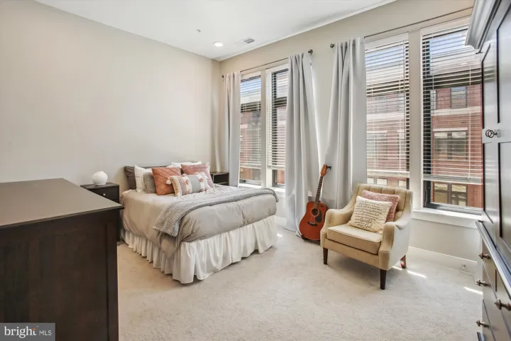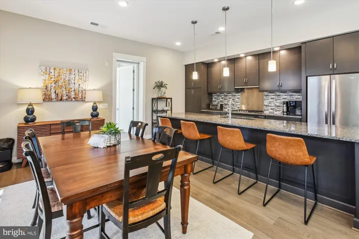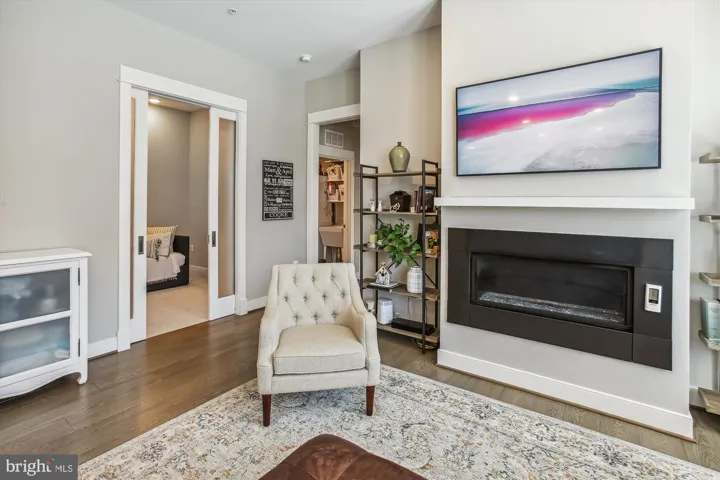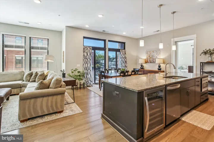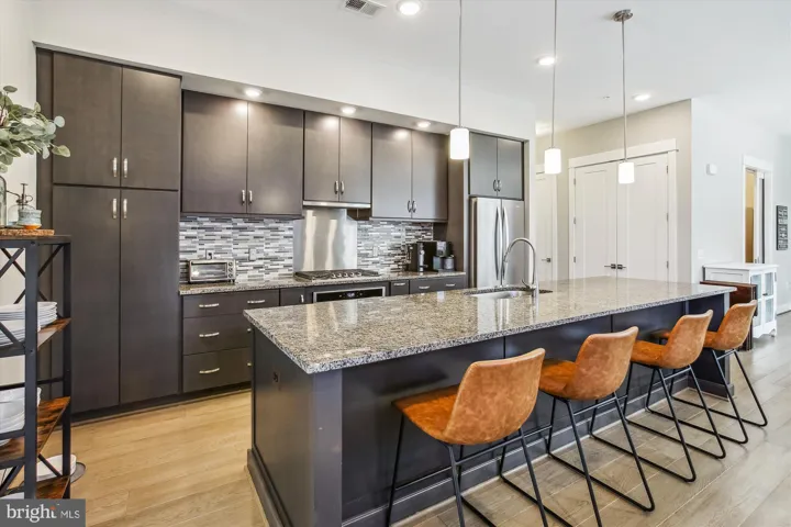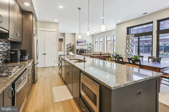 WOW!! AMAZING IMPROVED PRICE!! Nestled in the heart of historic and vibrant Leesburg, VA , this modern 2 bedroom, 2 bathroom condo includes a den PLUS a 1 car garage in the award-winning community of King Street Station. Featuring an open-concept floor plan, this home boasts 10″ ceilings and large windows that fill the space with natural light, creating a warm and inviting atmosphere. Wide plank flooring throughout the living space including in the foyer, hallways, kitchen, dining, and living rooms. The well appointed kitchen is perfect for cooking and entertaining featuring stainless appliances, gas cooktop, wine/beverage fridge, built-in microwave, expansive island, granite counter, custom tile backsplash, plus pendant and recessed lighting. The spacious dining room offers balcony access for relaxing with a book or favorite beverage. The living room features a gas fireplace for cozy nights. The owner’s suite includes a generous walk-in closet, and a private en-suite bathroom with custom tile, walk-in shower with bench, and dual sink vanity. Open the pocket doors to the den with recessed lights and carpeting. Continue down the hallway to the 2nd full bathroom with tub/shower, custom tile, and single sink vanity with quartz counter. The bedroom with recessed lights, carpeting, and generous closet space (2 closets!) is a private retreat. The laundry room with stacked washer/dryer includes a utility sink and tile floor. The 1-car garage offers ease of access to the entry level of the building and additional storage with ceiling racks. Rough-in wiring is in place for custom ceiling fans and/or light fixtures in all rooms as well as Home Theater surround sound speakers in living room. With proximity to the best of Leesburg including charming shops, award-winning restaurants, parks, and the W&OD Trail…PLUS ease of access to commuter routes…you’ll enjoy all the conveniences that this fabulous location has to offer!! There truly is no place like home.