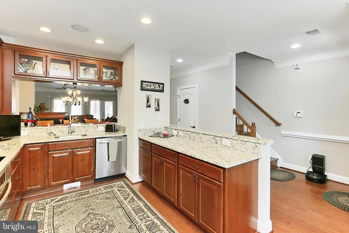 Nestled in the charming and historic town of Occoquan, this exceptional 4-level townhouse offers the perfect blend of modern luxury and serene waterfront living. This stunning home features 3 spacious bedrooms, 3.5 baths, and an elevator for easy access to every level. Located in the desirable Gaslight Landing community, this townhome offers breathtaking water views of the Occoquan River, bringing a sense of tranquility to your everyday life. Enjoy the convenience of a deeded dock for boating, fishing, or simply taking in the beauty of the water. The home boasts an open and inviting floor plan, rich hardwood flooring throughout, a soft neutral color palette, decorative moldings, with high-end finishes, and ample natural light flooding every room. ****** The main level is perfect for entertaining, with a spacious living and dining area featuring a cozy 3-sided gas fireplace providing warmth and ambiance. Here, a wall of French doors opens to a covered porch with river views, the ideal spot to relax and unwind. The gourmet kitchen with bay window is sure to please the modern chef with striking granite countertops, an abundance of upgraded 42” cabinetry, and stainless steel appliances including a glass cooktop and built-in oven and microwave above. A powder room compliments the main level. Hardwood flooring continues upstairs and into the light filled primary suite boasting a private covered balcony with river views, walk-in closet, and luxurious bath with a granite topped dual sink vanity, jetted tub, and glass enclosed shower. The second bright and cheerful bedroom, with hardwood flooring and private balcony, has easy access to the well-appointed hall bath with granite topped vanity and tub/shower. A laundry closet on this level eases the daily task. ****** The uppermost level features an amazing and versatile private suite with striking vaulted ceilings, hardwood flooring, granite topped wet-bar, ensuite full bath, and its own private covered porch with beautiful river views! A utility room that provides lots of storage space and a mudroom with a granite topped sink and elevator access leading to the carport adds convenience. For car enthusiasts and boat lovers, this property includes a carport that can accommodate 4 cars or 2 cars and a boat, completing the comfort and luxury of this wonderful home. ****** All this just steps to all the fine dining, shopping, and entertainment that charming Old Town Occoquan has to offer, while Potomac Mills Mall, I-95, Route 123, and the VRE are just minutes away. With its prime location, spectacular water views, and luxurious features, this townhouse is a rare opportunity you don’t want to miss!