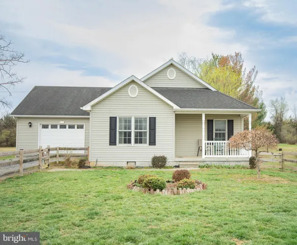 The charming ranch home offers a prime rural location with easy access to major highways, Enjoy the convenience of single level living, enhanced by vaulted ceilings in the living room that create a spacious feel. Hardwood and tile floors flow throughout the home, adding to its appeal. The partially finished garage–with electric, internet, drywall, and HVAC ducts–offers an additional 450 + square feet of potential living space. Step outside to a large deck and fire pit, perfect for outdoor entertaining. The beautifully landscaped yard features seasonal blooms and a chicken coop, which is ready for use. The exterior photos include scenes from the current season and also summer, when the property looks its best. More interior photos coming soon!!