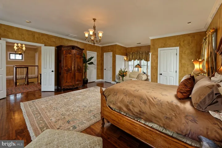 Returning to the foyer the handsome walnut staircase ascends to the second level with its wide hallway. At the top of the stairs is the spacious primary suite with elegant bath. This level also features two additional very private en-suite bedrooms.