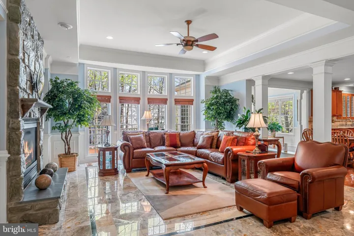 With over 6,500 sq ft across three beautifully finished levels, this home blends timeless architecture, elegant features, and thoughtful functionality. From the moment you enter, you’re welcomed by a dramatic two-story foyer with a sweeping staircase and formal dining and living spaces. The expansive family room features soaring ceilings, marble flooring, and a wall of windows that bathe the space in natural light. The layout flows seamlessly into a well-appointed kitchen with granite countertops, stainless steel appliances, double ovens, a center island, and a sunny breakfast area.