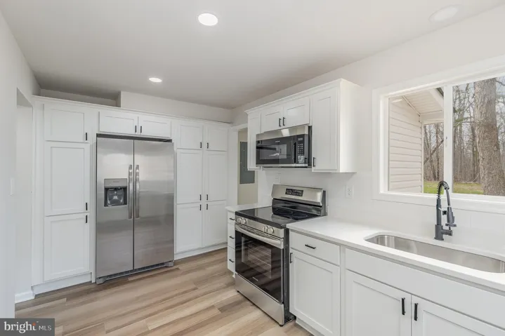 Newly renovated 4BR/2.5BA Farm style home sitting on a spacious 4.5 acre lot surrounded by nature, in the quiet neighborhood. Ample parking is just steps from the front door into your forever home. Enter into a beautifully designed home offering an abundance of living space, tons of natural light, luxury flooring, and recessed lighting. The main floor offers a large dining room open to the spectacular kitchen, a grand family room with a stunning brick, wood burning fireplace and a two story wall of windows, a half bath, and a main floor owners suite featuring a walk-in closet and a private ensuite bath. The kitchen boasts plenty of cabinets finished with crown moldings and includes a wall with three pantry closets, sleek quartz countertops with a subway tiled backsplash, stainless steel appliances, and a deep stainless sink under a window. Tucked behind the kitchen is the mudroom with laundry and access to the back yard. Take the staircase to the second floor landing that offers a view of the main floor below and features two spacious secondary bedrooms, a large primary sized bedroom, and a full bath. Imagine being the first family to begin making memories in this stunning home which is conveniently located in close proximity to shopping, restaurants, and commuter routes.