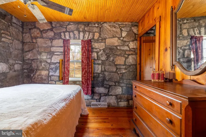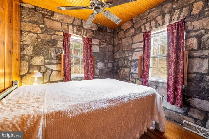 Stone Cottage @ Hawksbill Pines! Escape to serenity with this stunning 2 BR 1 BA cottage with gorgeous interior and exterior stone walls, giving it timeless character and warmth. This property is a true gem for those seeking peace and tranquility. Nestled in a beautiful setting, this cottage has a large living/dining room with vaulted ceilings and exposed wood ceiling, fireplace w/ woodstove insert and screened front porch. Level one is rounded out with kitchen, bath and bedroom. The loft above houses a nice sized bedroom that is open to below. The property is secluded, being situated at the end of Lawyer Drive, yet is convenient to the Hawksbill Recreation Park and Community Dog Park, as well as, Skyline Drive and Luray Caverns! Whether you are looking for a serene retreat or a charming get away home, this stone cottage is a one-of-a-kind opportunity!