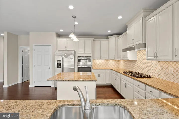 Dream Kitchen features stunning backsplash, custom granite countertops, a 5-burner gas cooktop, built-in microwave/wall oven, sleek white cabinetry, a spacious pantry, top-of-the-line stainless steel appliances, and a Commercial-Grade Range Hood—all centered around an oversized kitchen island. From here, the home flows gracefully into a spacious family room with a cozy fireplace, a sunlit sunroom with vaulted ceilings and skylights, and out to a private, expansive deck with a built-in gazebo—your perfect retreat.
