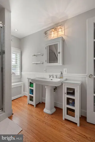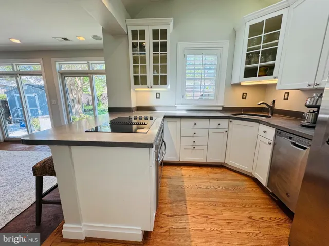 This elegant brick Cape Cod sits on a rare corner lot in highly desirable, walkable Rosemont! The 4-bedroom, 3 -full-bath-home possesses that rare combination of newer functionality and historic charm. Front porch sports updated Trex flooring; inside, solid hardwoods have been retained throughout the first level and upstairs. Home is a spacious 2001 total square footage (differing slightly from tax records of 1901) . The front living room features a fireplace, built-in shelving and recessed lighting. Current owners added a cozy banquette in the dining room. Spacious pantry at foot of stairs off kitchen, and coat closet in main-level hallway. Bright and airy sunroom overlooks the private, fully fenced backyard oasis. Radiant heat warms the concrete floor of the sunroom, a space bounded by a beautiful brick wall and a double set of sliding glass doors. The adjoining kitchen contains custom glass cabinetry with undermount lighting, stainless-steel appliances, and a skylight. Outside features include a well-built privacy fence and large patio perfect for entertaining. A new shed lends amazing storage and functionality—OR take advantage of the “curb cut” on that side of the lot and build a new garage in its place! On the main level off the living room, two nicely sized bedrooms flank a renovated full bathroom. Upstairs, the primary bedroom suite sports a stunning full bath, an ample walk-in closet and a lovely ceiling decked in wood trim. Fully finished basement family room feels more like a main-level space with high ceilings, newer carpeting, recessed lighting, radiant floor heating, and the natural light of an egress window well. The room is a flexible space, with en suite bath and spacious laundry room with heated flooring, adjoining office or gym; a huge storage room completes the level. Storage room is suitable for conversion to fifth bedroom. Be sure to peek into the closet containing a beautiful copper-pipe water system. Newer HVAC, hot water heater, and energy efficient windows with plantation shutters throughout. Walk to the Braddock or King Street Metros, your elementary or middle schools, Del Ray or Old Town. Friendly and welcoming street with a great community feel. Come for the home; stay for the quality of life in coveted Rosemont!