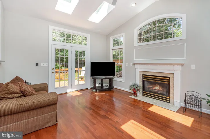Sun-filled family room with skylights