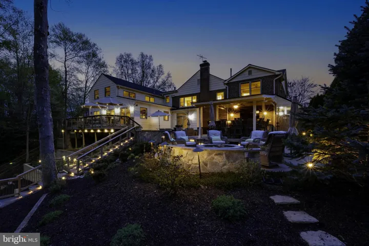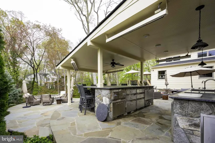 Outside, this home shines with over 3,000 square feet of outdoor living space. The flagstone patios, two decks, and massive outdoor bar area with heaters, a stainless steel kitchen, large screen television and built-in fire pit area make for an entertainer’s dream. All surrounded by mature trees, offering privacy and tranquility. The backyard, which borders a creek leading to the Potomac River, is perfect for relaxing in hammocks, gardening, or enjoying nature. The property also features a fenced perimeter for added security and privacy, as well as a workshop, an equipment shed, and multiple utility areas for outdoor tasks.