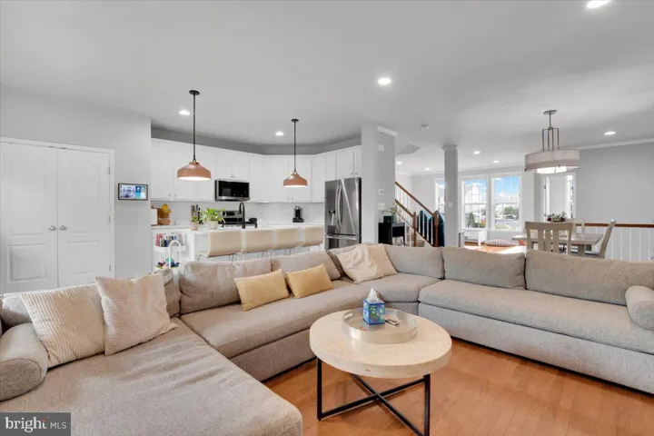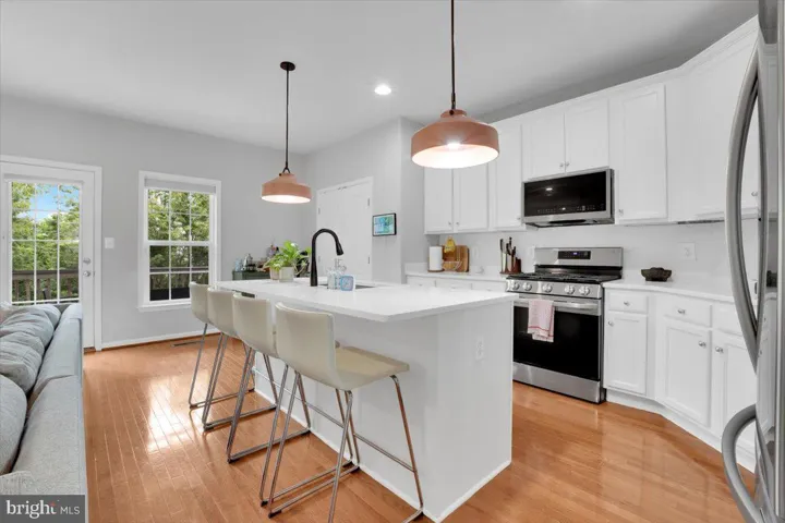 This beautifully updated 4BR/3.5BA 2-car garage townhome offers a rare entry-level in-law suite and backs to a serene lake and park—perfect for enjoying nature right from your backyard. Outdoor living shines with TWO REAR DECKS, a SPACIOUS PATIO, and fresh landscaping. Inside, the main level features an open layout with the wall between the living and dining areas removed to create a bright, flowing space. The kitchen boasts NEWER STAINLESS STEEL APPLIANCES (MICROWAVE, RANGE, DISHWASHER, REFRIGERATOR) and modern lighting (NEW LIGHT FIXTURES). RECESSED LIGHTING has been added in the living room, family room, and primary bedroom. The lower-level bedroom has NEW FLOORING, and all BATHROOMS feature UPDATED towel racks and fixtures. A CUSTOM BUILT-IN HALL TREE adds convenience at the entry. The spacious primary suite includes three closets and private deck access. This home is MOVE-IN READY and full of thoughtful upgrades.
