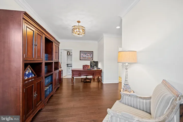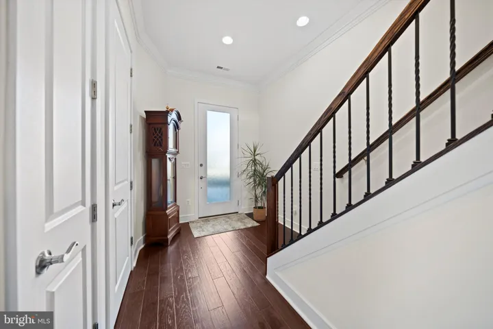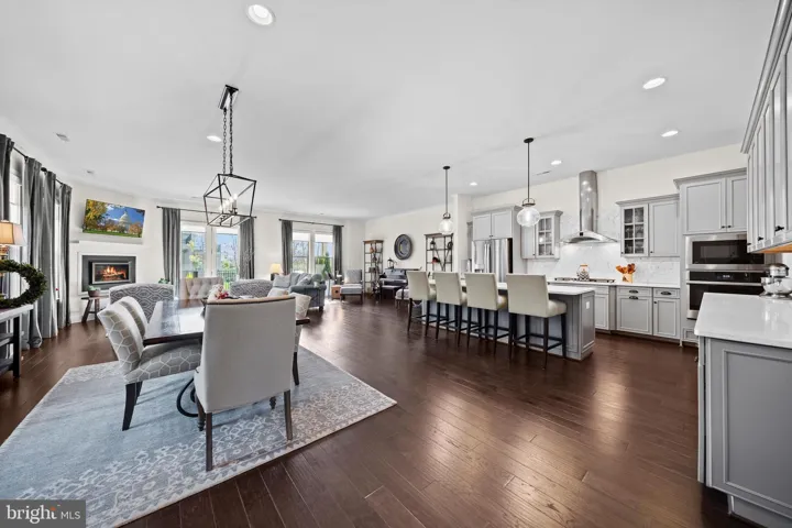 Upper-level rear balcony off of the primary bedroom also overlooks the lake. Upgraded beautiful wood flooring throughout the main level of the home, loft area and primary bedroom on upper level, hardwood stairs, upgraded wrought iron stair railing as well as extensive crown molding details. The upgraded gourmet kitchen features an extended island finished with paneling, upgraded cabinets, quartz countertops, stainless steel appliances, and gorgeous tile backsplash. The main level is very open and spacious with lots of natural light, and a gas fireplace.