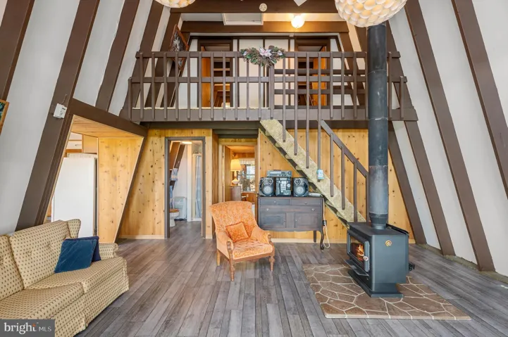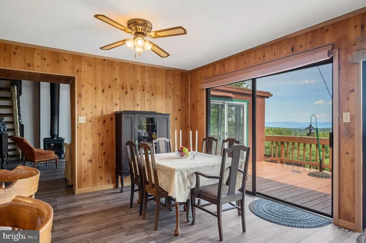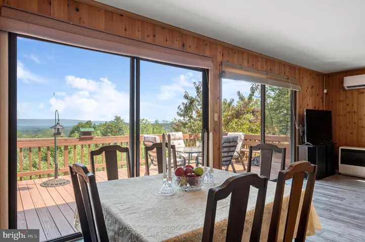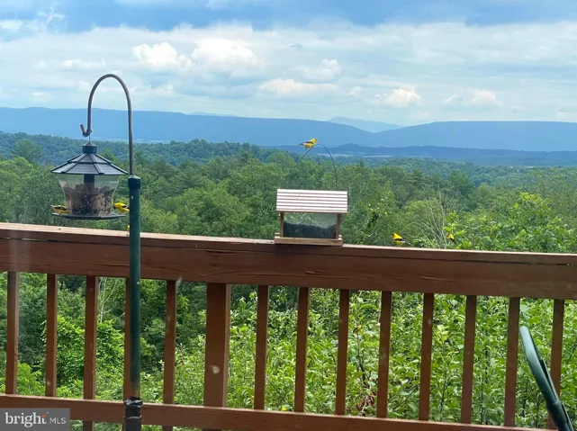 Discover a unique, almost heavenly retreat atop a ridge with unparalleled million dollar mountain views, just a short drive (approx 10 miles) from Basye and Bryce Resort amenities. This picturesque four-bedroom (3 bedroom septic for 6 person occupancy) chalet, with a total of 1,904 sqft of finished space, sits on 3 acres enveloped by tranquil nature, including your own mini orchard with pear, plum, nectarine, apple and peach trees. Imagine waking up to sip coffee while witnessing stunning mountain sunrises—each day a new spectacle of colors. Or spending your evenings warming up by the wood stove after a day spent skiing at Bryce Resort, or hiking. The expansive glass windows offer panoramic views of New Market Gap, enhancing three separate interior living areas as well as two decks for superior bird watching.