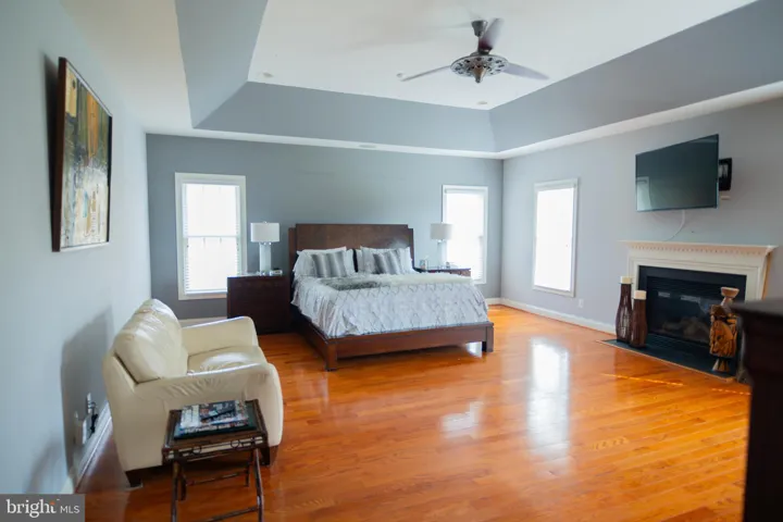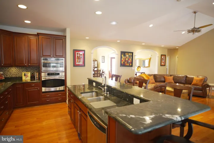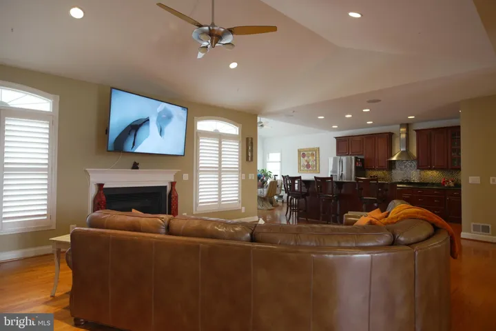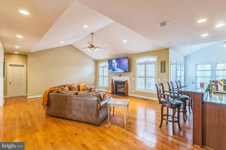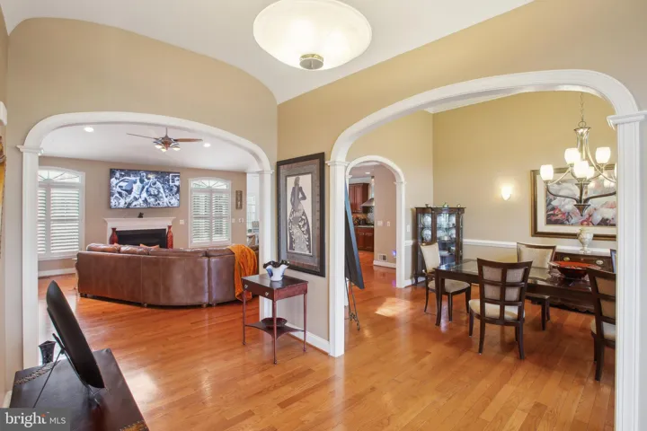 for the next generation. Main Level Highlights: Barrel ceiling foyer sets a grand tone upon entry. Elegant 12’ ceiling in the formal dining room. Vaulted ceiling in the spacious family room with gas fireplace and plantation shutters. Hardwood floors throughout. Gourmet kitchen with cooktop, wall oven, convection oven, oversized walk-in pantry, and eat-in breakfast nook. Open floor plan perfect for entertaining with built-in surround sound system that extends to the exterior deck, great for hosting those perfect parties.