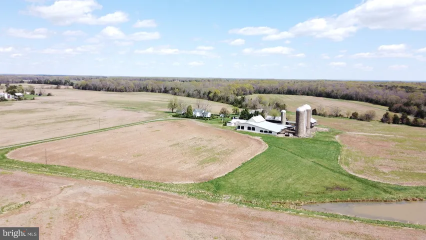 The farm also includes multiple garages and accessory buildings, five silos, and one large cow barn, making it well-suited for agricultural operations, equipment storage, or expanded uses.