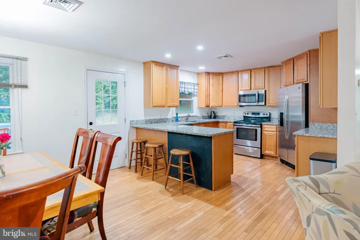 Inside, you’ll find gleaming hardwood floors throughout the main living areas, enhancing the home’s warmth and charm. The spacious kitchen features granite countertops, stainless steel appliances, and a convenient breakfast counter, ideal for casual meals or entertaining. The kitchen flows seamlessly into the dining room, where you can step directly out to the patio—making indoor-outdoor living a breeze.