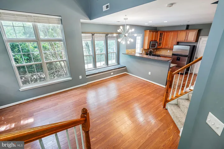 Welcome home to this stunning end-unit townhouse-style condo featuring breathtaking, unobstructed views of the pond and easy commuter access. The main level boasts soaring 20+ ft ceilings in the living room and custom built-in reading/seating nook. a spacious balcony perfect for outdoor relaxation. The updated kitchen includes stainless steel appliances, countertop seating, and a large pantry—complete with a new stove & new garbage disposal. Upstairs, you’ll find a spacious balcony for outdoor relaxation and lots of natural light. This condo offers 2 bedrooms and 2.5 baths, with two full baths on the second level and a convenient half bath on the main level. The notably large master bedroom features a walkout balcony, a luxurious bathroom with a standing shower and separate tub, and 3 closets [including a walk-in closet, a standard clothing closet, and a linen closet]. The second bedroom also has french doors, natural light, a closet, and an additional bathroom. An attached one-car garage and driveway provide private parking, along with a street parking pass. Ideally located near I-66, 29, and 15, this home is only minutes to Virginia Gateway shopping center, 6 supermarkets, restaurants, Downtown Haymarket, and numerous other shops.