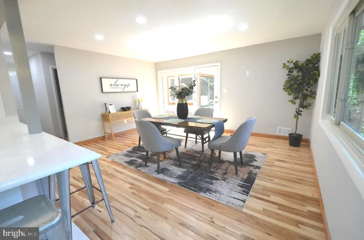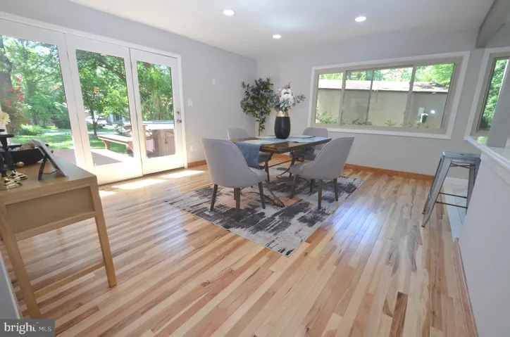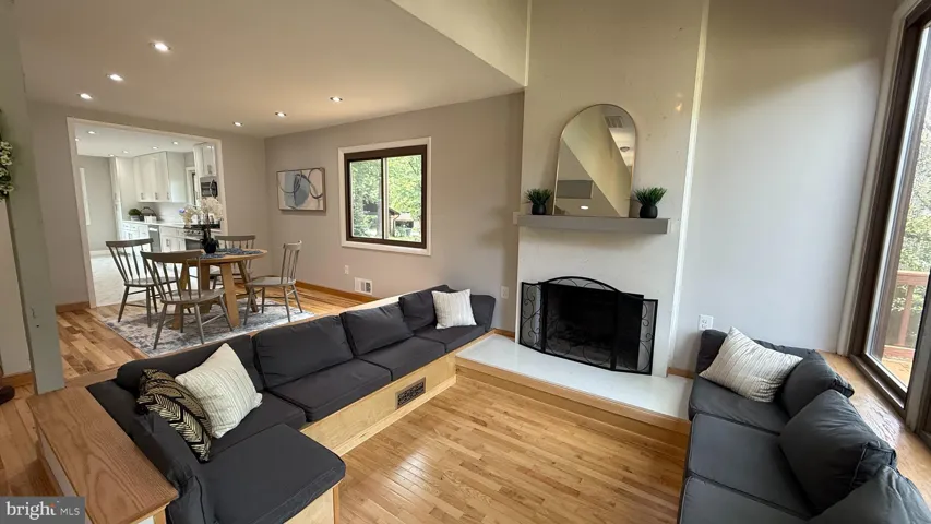 Gleaming new hardwood floors stretch across the main level, leading you into the stunning two-story family room with an eye-catching, modern fireplace and an adjacent sitting area bathed in natural light. Hosting dinner parties or holiday meals will be a breeze in the spacious formal dining room, designed for gatherings of all sizes and open space.