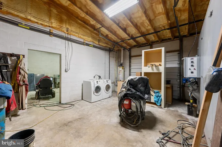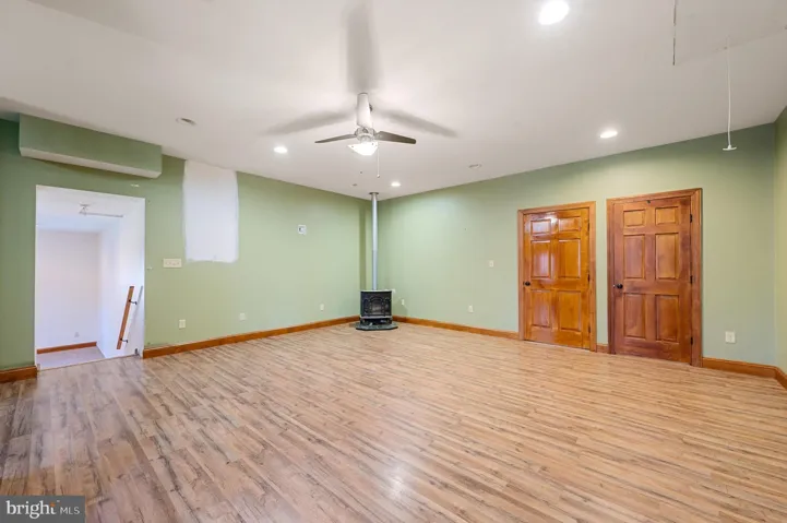 A large outdoor wood furnace providing warmth to both the home and workshops, while individual heaters in several shops offer flexibility. The primary workshop boasts impressive dimensions: 40′ x 41′ with a 14’ ceiling height, a 14′ wide x 12′ high garage door, and an electric opener—making it perfect for storing an RV, multiple vehicles, or large equipment. Ample room for large trucks!