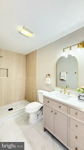 Beside the large size of kitchen, you will have your dream office or second master suite for your family relative to use in the Main Level. The suite comes with a large walk-in closet, a brand-new 60” large shower, and a 60” double vanity. It is carefully chosen and designed. The brush gold hardware matches best with the Ribbon Maple Ceramic Tile. It elevates your space, featuring a gorgeous matte finish style, creates a grand piece perfect for shower walls.