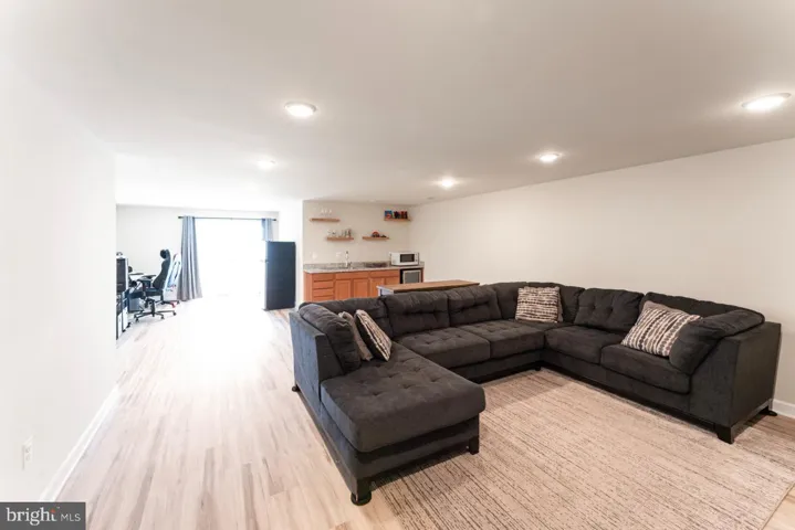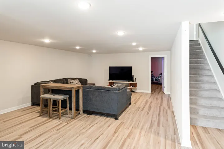 Upstairs includes two additional bedrooms and a full bath with a tiled tub/shower combination. The fully finished basement adds versatility with a fifth bedroom, fourth full bathroom, wet bar, media/family room, and a separate rec room currently used as a gym.
