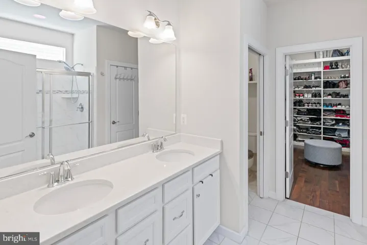 The kitchen features quartz countertops, a tile backsplash, stainless steel appliances, recessed lighting, upgraded cabinetry with pull-out drawers, and a large island with breakfast bar seating. The Owner’s Suite includes a double quartz vanity, upgraded tile shower and a large custom walk-in closet.
