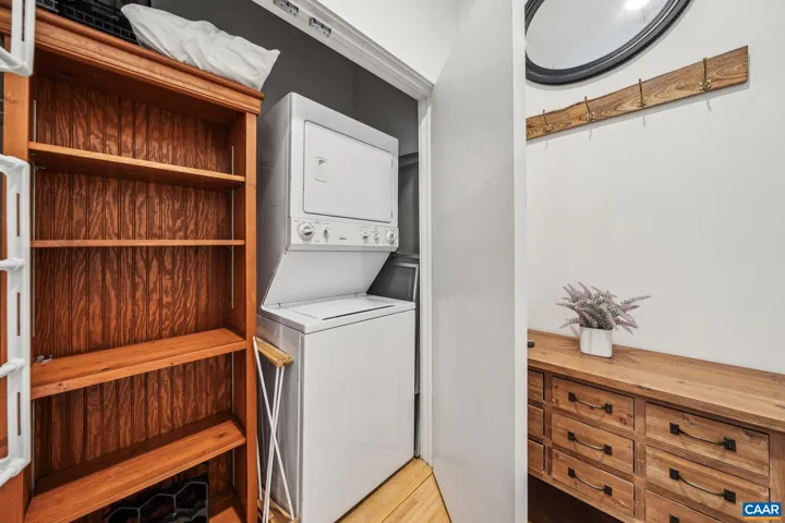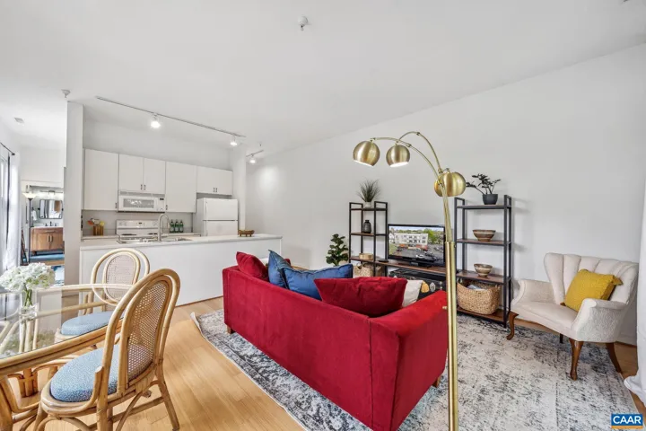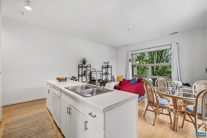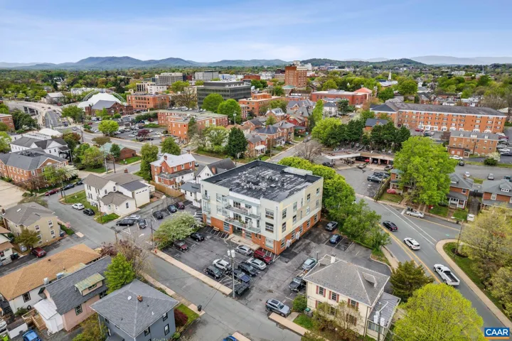 Live in a glass treehouse at ?The Eight Twenty?, a contemporary boutique building with elevator a block from the Downtown Mall! Move in ready 1 bedroom corner unit with a very functional layout features: tastefully updated bathroom in 2022, new HVAC with Ecobee in 2021, 1 dedicated parking space, private in unit laundry, bamboo flooring, kitchen island, secure call box access and mail room. Foyer with perfect art gallery wall extends into an open kitchen/living room with enough space for living, dining, and desk area. Plentiful, large, windows with screens pair with high ceilings to bring the outside in! Had enough for the day? Use the top-down bottom-up shades or blackout curtains to your liking. Bamboo floors throughout. Great as a full time or ?lock and leave? residence. Don?t miss this opportunity for a special condo in a unique building!,Formica Counter