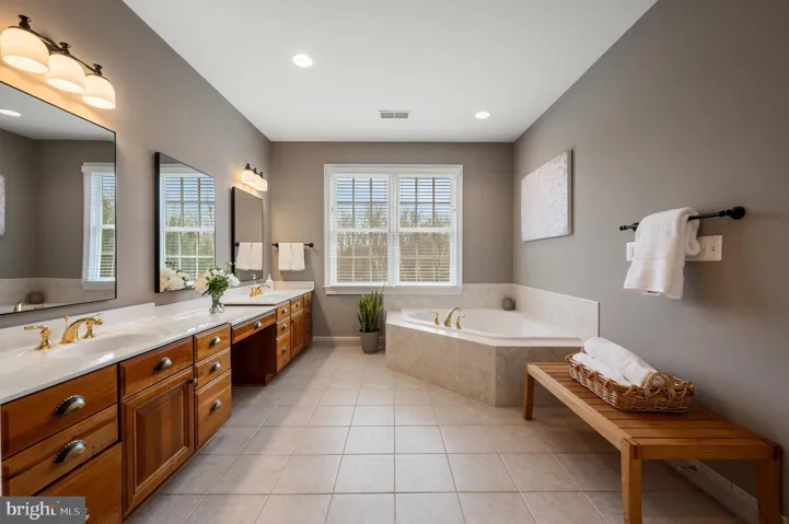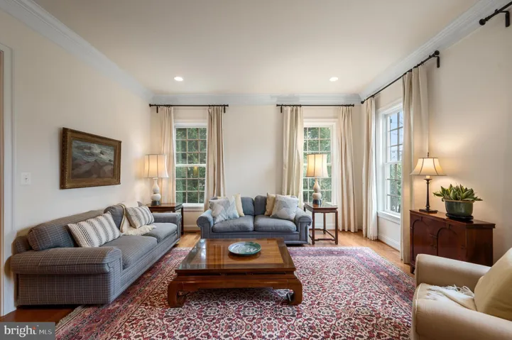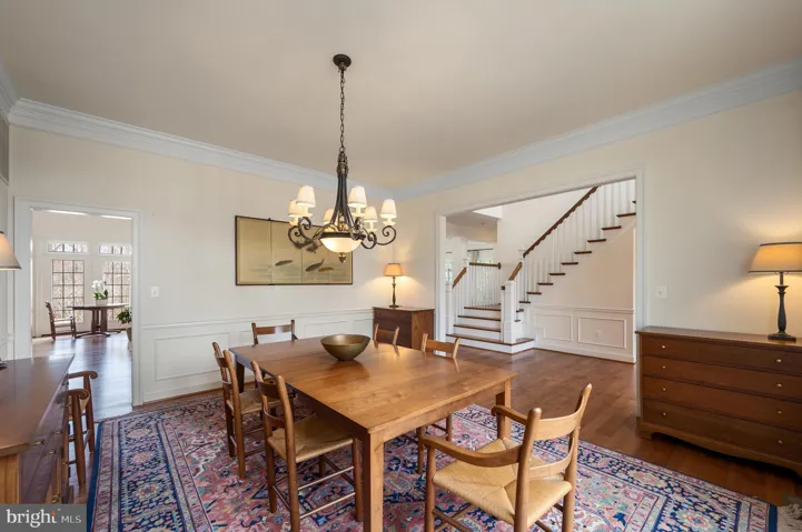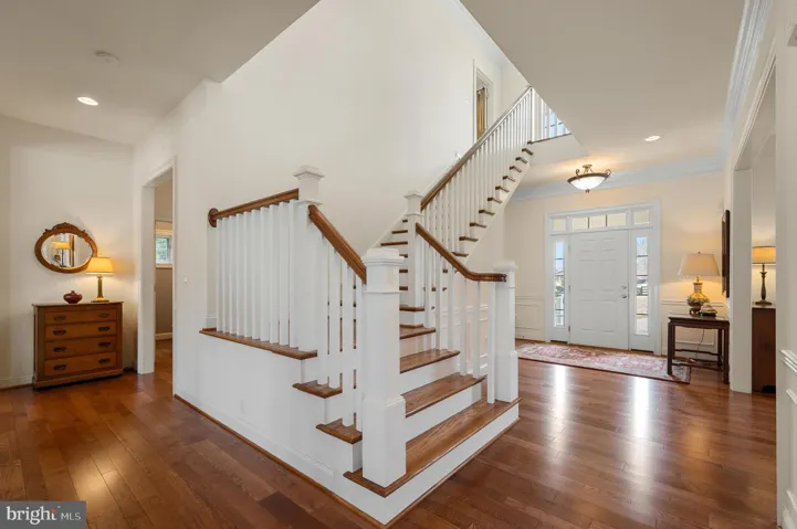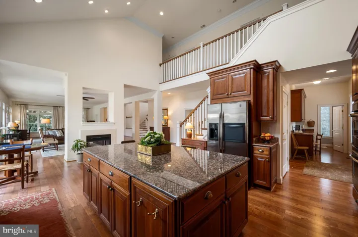 Upon entering, you are greeted by a grand foyer that sets the tone for the high-end finishes and pristine random-width hardwoods found throughout the home. Ten foot ceilings on main with beefy moldings and trim. The gourmet kitchen is a chef’s dream, boasting a unique vaulted ceiling, granite countertops, a cooktop, wall oven, and an oversized island with seating. Breakfast area with double-sided fireplace. Butler’s pantry, mudroom with separate entrance, large walk-in pantry. Two half baths on the main level. Back staircase with hardwoods to the upper level.