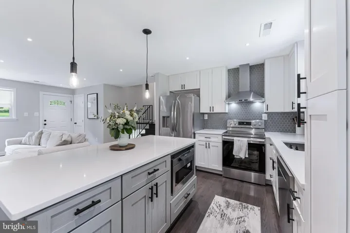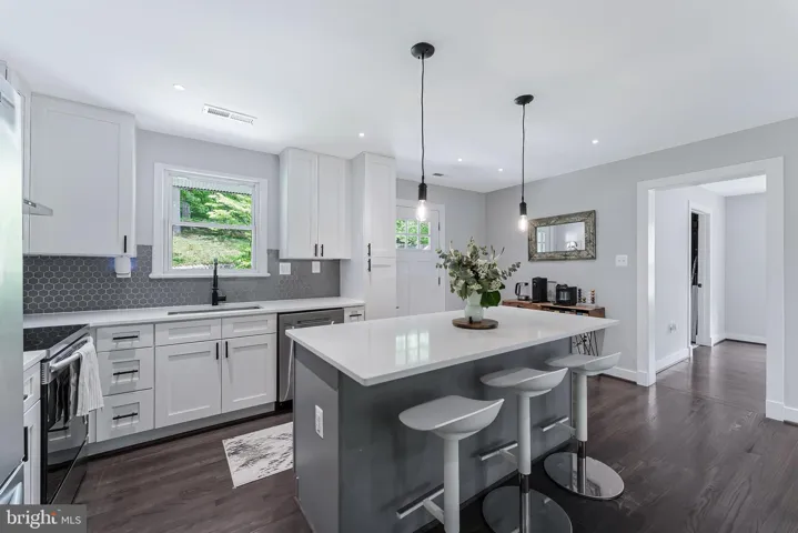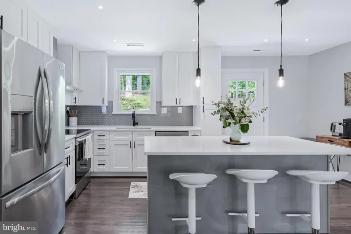 The heart of the home—a fully renovated kitchen—boasts soft-close shaker cabinets, a generous island perfect for gathering, and brand-new overhead lighting that floods the space with warmth and brightness.