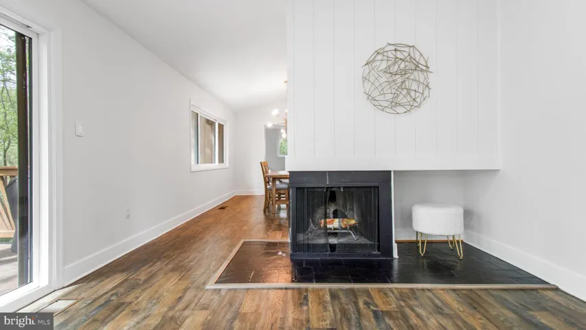 Step inside to find a versatile and open floor plan with more than 3,100 sq. ft. of living space across three levels. The main-level living room boasts vaulted cathedral ceilings, rustic texture paint, and a striking picture window that draws the eye upward to the treetops and sky. A cozy fireplace and hardwood floors complete the inviting space.