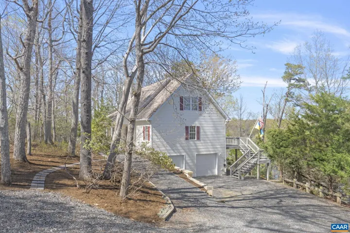 Calling all nature lovers- Tucked away at the end of a quiet cul-de-sac, this rare 1.8-acre property offers unmatched wooded privacy and over 550 feet of pristine waterfront on Lake Monticello, affording the opportunity to enjoy some of the most sweeping views of the lake. Surrounded by mature trees, the setting is peaceful and secluded, ideal for nature lovers seeking a private retreat. As you enter the home through the vaulted entryway, you?re welcomed by an open, airy layout that blends beautifully with the natural surroundings. The spacious kitchen is perfect for entertaining, and the first-floor primary suite provides lake views and direct access to the outdoors. Upstairs, two generous bedrooms with walk-in closets and panoramic lake views perfect for family or guests. The finished terrace level includes a cozy living area, an office, and another bath?perfect for guests or quiet evenings. Whether you enjoy kayaking from your private dock, relaxing on the deck, or taking in the beauty of the wooded landscape, this property offers privacy rarely found on the lake. Located in a sought-after golf course community with resort-style amenities, including a pub with live music, community pool, beaches, tennis courts and more.,Formica Counter,Oak Cabinets,Fireplace in Living Room