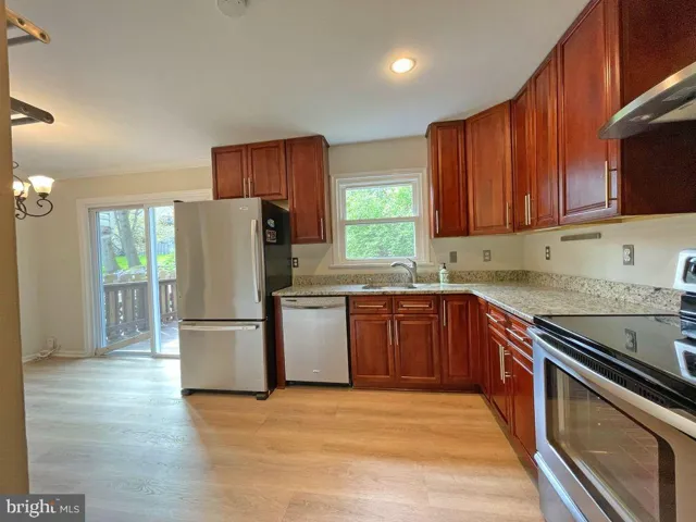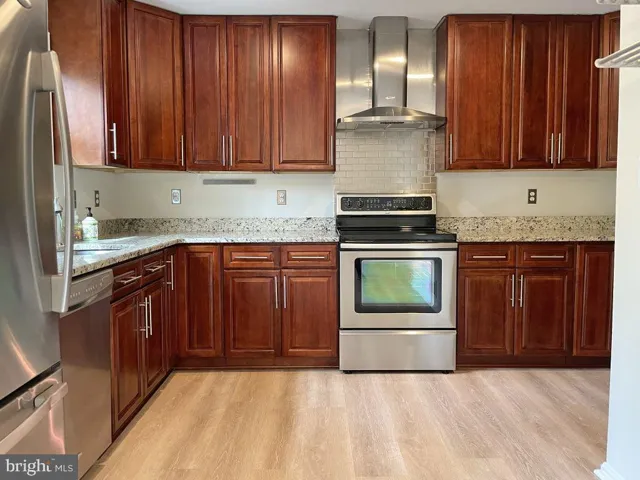 This end unit brick front townhome has been freshly painted with newer windows throughout along with a gourmet chef kitchen that has granite countertops, cherry cabinets and stainless-steel appliances. The kitchen opens to the deck and the backyard with a nice quiet place to relax.
