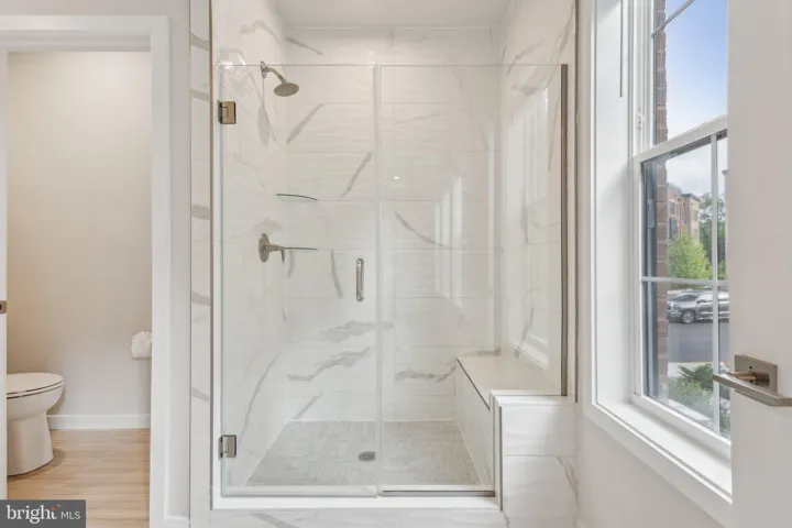 Upstairs, the expansive primary suite is a serene retreat, boasting a wall of windows for abundant natural light, a massive walk-in closet, and a spa-inspired en-suite bathroom. The en-suite showcases dual vanities with quartz counters, a private water closet, and a luxurious walk-in shower adorned with marble-style tile work. Two generously sized guest bedrooms offer ample closet space and flexibility for guests, a home office, or additional living needs.