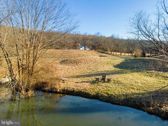The original cabin, anchored by a handsome fieldstone fireplace and exposed chestnut log interior, exudes warmth and character. Modern addition includes main level primary suite and 2 charming guest rooms on upper level of the original cabin. Surrounded by nature, this unique property includes several charming outbuildings, including: 3-stall shed row stable with tack room and run in shed, 3-bay equipment building with an artist’s studio perfect for creative pursuits. Nature lovers will be captivated by the 20 acres of old-growth timber, while the remaining land is gently rolling pasture. A stunning building site overlooks a picturesque spring-fed pond, complete with a dock.
