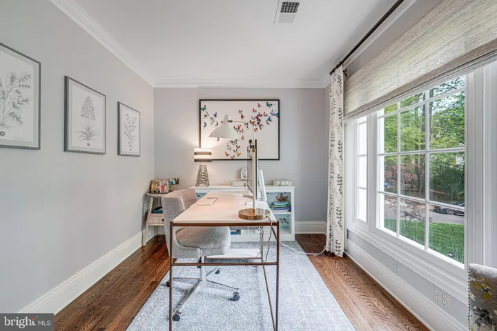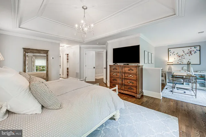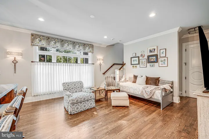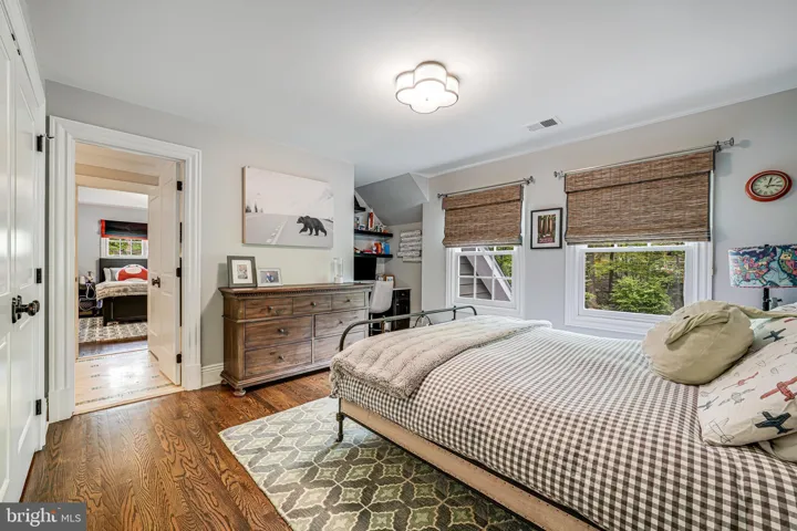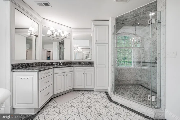 Upper level:Has primary with sitting area, two walk-in closets both with designer custom shelves and drawers, and a timeless estate bath. Bath includes integrate elegant tile work, double vanities , Palladian window bump out, soaking tub and oversized shower. Nice sized 2nd with updated en-suite BA. The 3rd & 4th BR’s share an updated Jack and Jill BA.
