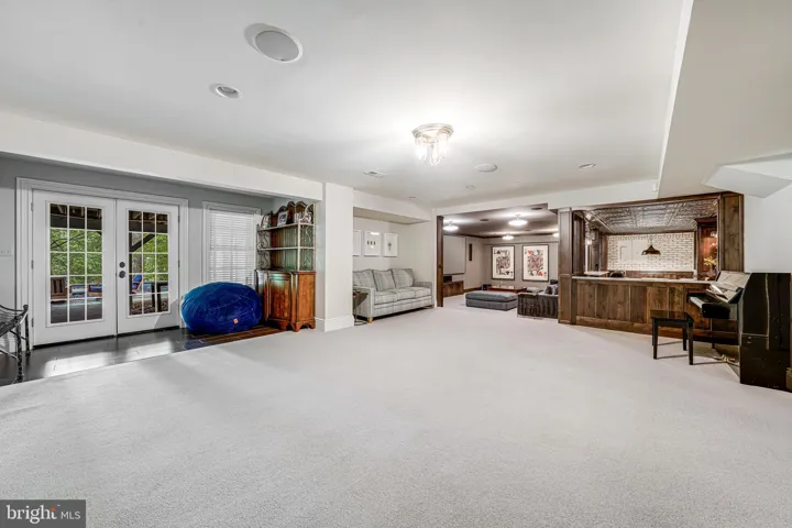 Walk out Lower level: Has BR and updated bath, great for nanny suite. Separate home gym. Featuring large remarkable entertainers dream area with home cinema, game center and wet bar featuring hammer metal ceiling, beverage refrigerator, custom built-in cabinets. Walk out to stone patio with built-in fire pit for cool night gathering.