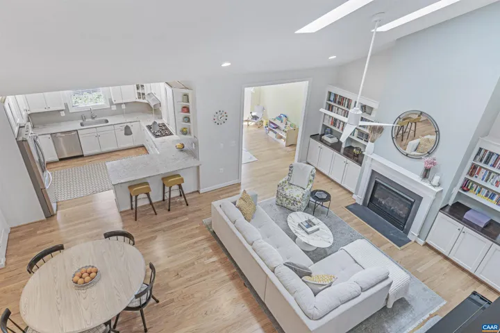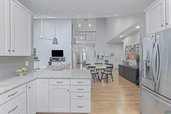 Enjoy low-maintenance, one-level living in desirable Dunlora Forest?conveniently located near major roadways, UVA, and downtown Charlottesville. This beautifully updated home offers an open-concept floor plan with vaulted ceilings in the great room, allowing for an abundance of natural light throughout the main living space. The upgraded kitchen features granite countertops, a stylish backsplash, and high-end stainless steel appliances?perfect for everyday living and entertaining. Just off the great room, a finished sunroom provides additional space to relax or host guests. The main-level primary suite is thoughtfully positioned near the laundry room for added convenience, and a dedicated office (or 4th bedroom) provides flexibility for working from home. Upstairs, you?ll find two spacious bedrooms and a full bathroom plus a utility room that provides space for additional storage. Step outside to a private, fully fenced backyard framed by mature trees?offering a peaceful retreat with space to entertain, or simply unwind.,White Cabinets,Fireplace in Great Room