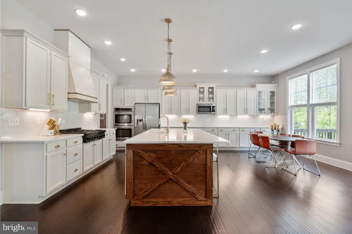 The heart of the home is the gourmet chef’s kitchen, an entertainer’s dream outfitted with state-of-the-art stainless steel appliances, a monumental center island, exquisite custom cabinetry, and designer lighting. This culinary space flows effortlessly into expansive dining and living areas framed by sun-drenched windows and sophisticated finishes, creating the perfect backdrop for both intimate gatherings and grand celebrations.