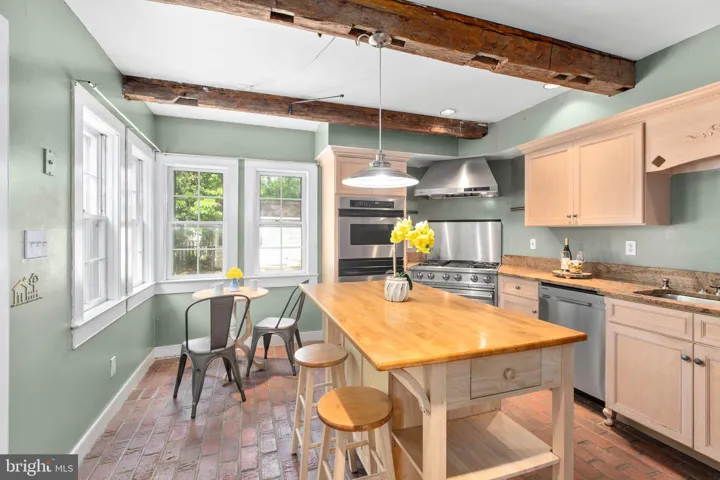 The main level boasts an entry foyer, living room with a gas fireplace, separate dining room, powder room and 16 x 14 modern kitchen with a brick floor. The cozy breakfast area with French doors opens to a screened-in patio—perfect for morning coffee or evening relaxation. Step outside to a beautifully landscaped backyard that offers rare privacy in the heart of downtown. Upstairs living includes four well-appointed bedrooms, 2 full bathrooms and a laundry closet. The 16 x 14 primary suite has cathedral ceilings and an en-suite bath. Original pine flooring throughout most of the upper level. Whether you’re commuting via rail or strolling through downtown’s historic streets, this rare offering combines timeless elegance with everyday practicality. Don’t miss your chance to own a unique piece of Fredericksburg history.