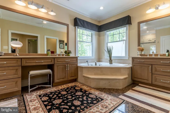 The main level also offers two private office spaces, a mudroom, and a laundry room—ideal for today’s lifestyle. Upstairs, the luxurious primary suite features two walk-in closets and a beautifully appointed bath with a soaking tub and glass-enclosed shower. Additional bedrooms include a Jack & Jill suite and two more private ensuite bedrooms. All bathrooms were thoughtfully remodeled in 2016.
